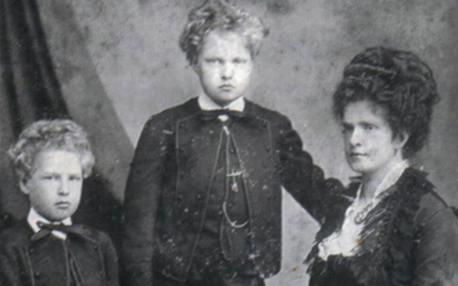 1872: D. Carlos, ao centro, futuro Rei de Portugal, com o irmão D. Afonso, à esquerda, e D. Maria Pia, a mãe e Rainha de Portugal