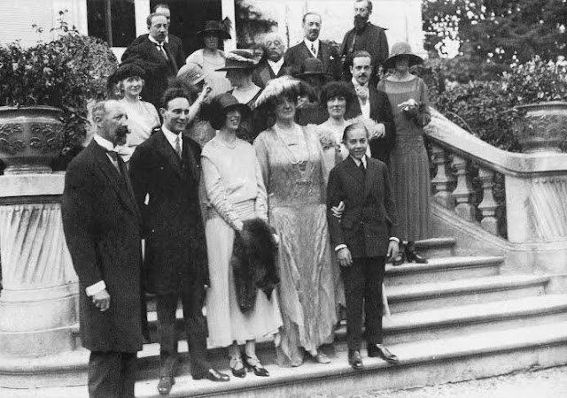 Na primeira fila o Duque de Guise, Conde Bruno d'Harcourt, Princesa Isabelle, Rainha D.Amélia segurando o braço do jovem Príncipe Henri (15 anos) futuro Conde de Paris e a Duquesa de Guise. Atrás dela, o Rei Manuel II de Portugal e a sua esposa D.Augusta Vitória.