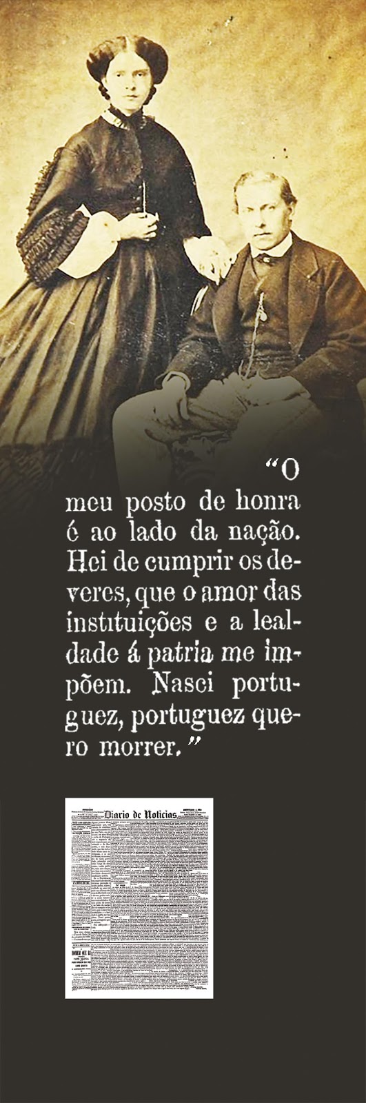 O Rei D. Luís não quis ser monarca de Espanha e fez questão de o deixar bem claro tanto ao Conselho de Ministros, presidido pelo duque de Loulé, como ao povo português. Dois dias depois de a sua carta patriótica ter saído no Diário do Governo, foi a vez da publicação no Diário de Notícias, jornal então com apenas cinco anos mas já dos mais populares, servindo assim à Casa Real para desmentir o boato de que iria haver abdicação: "Nasci português, português quero morrer", proclamou D. Luís, na primeira página do DN a 28 de setembro de 1869, faz este sábado 150 anos.