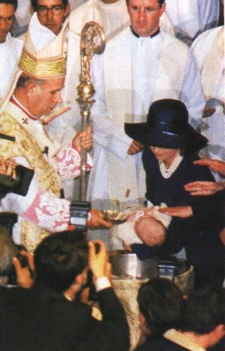 De mãos atrás das costas é o actual Chefe da Casa Real Portuguesa, D. Duarte Pio de Bragança e, com as mãos nos bolsos, D. Miguel Rafael de Bragança, Duque de Viseu.