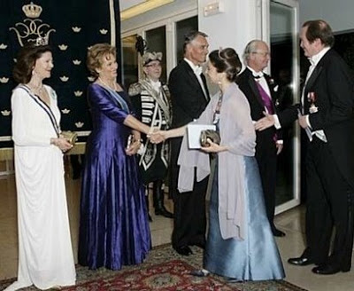 SS.AA.RR., Dom Duarte de Bragança e Dona Isabel de Bragança na sessão de cumprimentos que precedeu o jantar de Gala oferecido pelos Reis da Suécia, Carlos Gustavo e Sílvia, no âmbito da visita de Estado que realizaram a Portugal entre 5 e 7 de Maio de 2008.